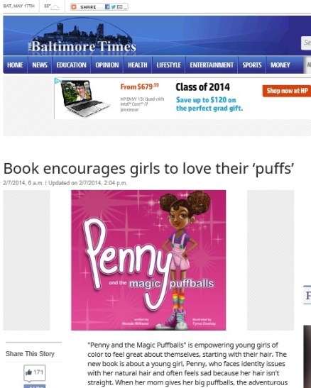 Baltimore Times Feature http://baltimoretimes-online.com/news/2014/feb/07/book-encourages-girls-love-their-puffs/